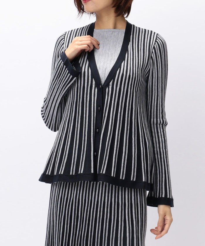 【セットアップ対応商品】アイレットストライプ編みVネックカーディガン