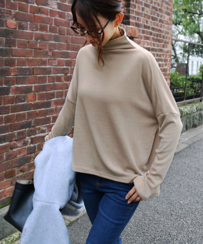しっとり、ふわふわ…暖かい!! 表地は柔らかな肌触り、裏地は 起毛素材になった暖かカットソーが 入荷しました!! ストレッチが効いた素材で とにかく着心地が楽ちんです。 首元はボトルハイネックで締め付けず、 クシュっとしたニュアンスに。 お袖はドロップショルダーでゆったり、 ドルマンのシルエット。 二の腕まわりはゆとりがあり、袖口にかけて ピタッとフィットする袖のラインに仕上げています。 前後差のあるヘムラインで後ろ丈が長め! ヒップを程よく隠しつつシルエットは美ラインに。 薄着の季節は1枚でサラッと。寒い季節は アウターのインに大活躍です!! MODEL:身長162cm ※撮影時のライティング、ご覧になっているモニター・PC環境により 実際の商品と色味が異なって見える場合がございます。 ご了承の上お買い求め下さい。