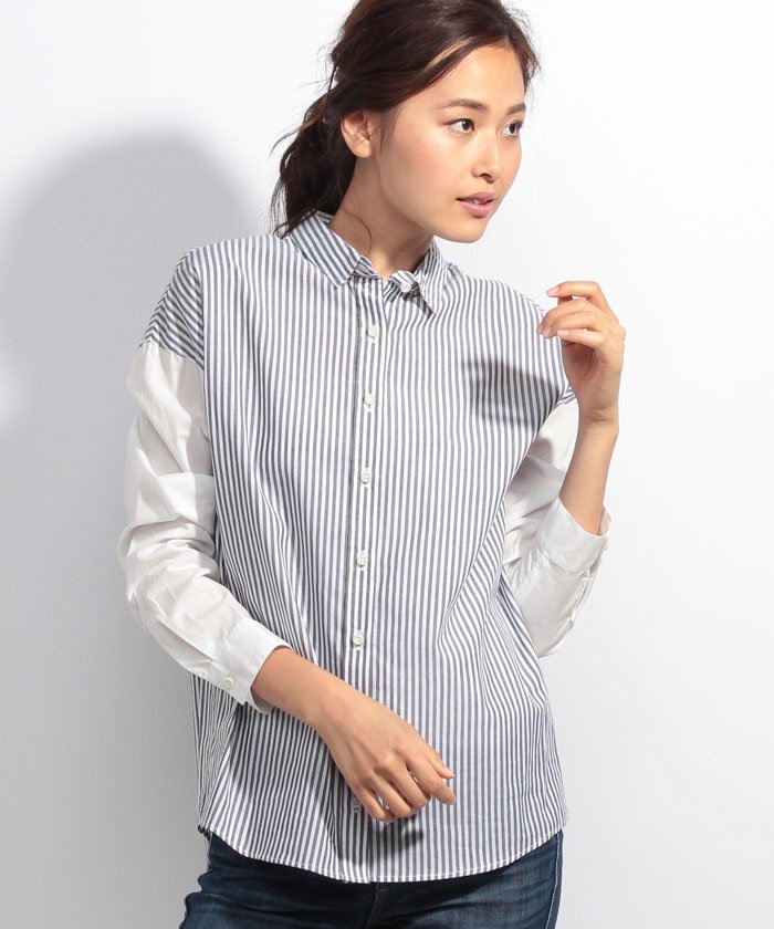 定番ストライプもアームの切り替えで新鮮さUP!!ニットのINにしても、一枚で着てもコーデが決まる、この時期ぴったりなシャツです。