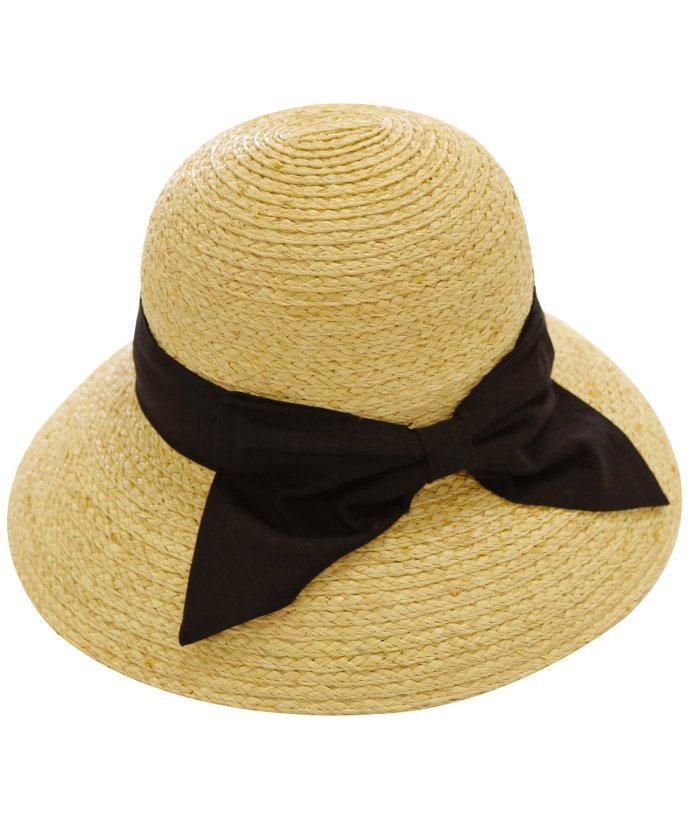 ハット レディース ラフィア 100% 麦わら 帽子 つば広 キャペリン りぼん