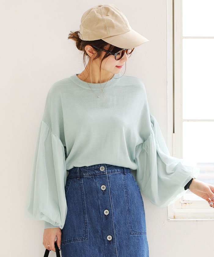 さらっと柔らかな春ニットに ふっくらチュールレースをあしらった ボリューム袖がかわいい!! 異素材をドッキングしたデザインが印象的な ニットTOPが入荷しました♪ シンプルなクルーネック。 ジャストな丈感も着まわしやすく キレイめでもカジュアルでもコーデがきまる! シーズンのおすすめitemです♪ MODEL:身長158cm MODEL:身長162cm ※撮影時のライティング、ご覧になっているモニター・PC環境により 実際の商品と色味が異なって見える場合がございます。 ご了承の上お買い求め下さい。