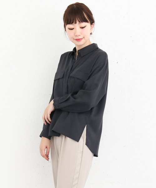 とろみ素材を使用した、比翼仕立てのシンプルなシャツ。胸元に付いた2つの飾りポケットがアクセントに◎ワイドシルエットが、どことなくメンズライクな印象を漂わせる1着。さらっと着るのはもちろん、ニットやジャケットなどのインナー使いにも重宝すること間違いなし。ベーシックだからこそ長いスパンで着回せますよ。