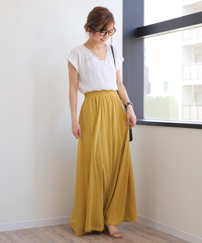 ふわっと揺れるニュアンスが涼しげで 大人っぽい♪新作マキシスカートが 入荷しました!ウエストゴムで楽ちん仕様。 ガーゼ天竺がふわっと軽く、サラッとした 肌ざわりもこれからのシーズンにぴったりです。 ずるっと長いロング丈で、こなれた印象に♪ ベーシックから差し色まで 幅広いカラバリを取り揃えました♪♪ 裏地あり MODEL:身長158cm ※撮影時のライティング、ご覧になっているモニター・PC環境により 実際の商品と色味が異なって見える場合がございます。 ご了承の上お買い求め下さい。